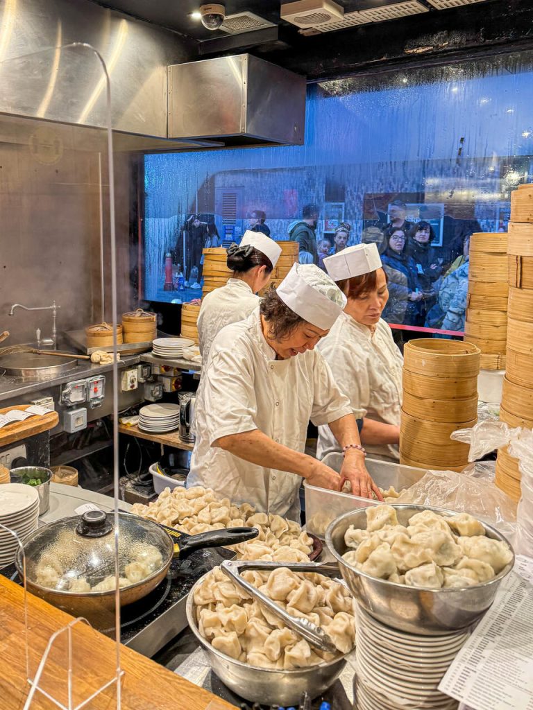 Na Chinatown musiałam pójść na pierożki dim sum i trafiłam do Beijing Dumpling. Jeśli macie ochotę na coś azjatyckiego w samym sercu londyńskiego Chinatown, koniecznie tam zajrzyjcie. To niewielka, bardzo popularna knajpka słynąca przede wszystkim z ręcznie robionych pierożków – możecie podejrzeć, jak powstają przez szybę przy wejściu.