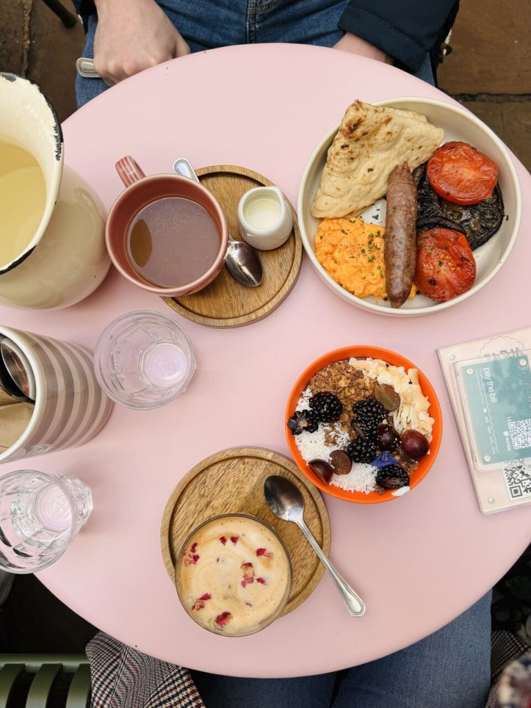 Farm Girl na Notting Hill to popularna miejscówka na śniadanie, dlatego niech Cię nie zdziwi kolejka czekających przed wejściem. Jest to typowe instagramowe miejsce, więc influenserzy z całego świata walą tu drzwiami i oknami. Nie oznacza to jednak, że tutaj liczy się tylko „wygląd”. Śniadania są pyszne, ale uzbrójcie się w cierpliwość. Polecam różane latte (5 funtów) i acai bowl (13 funtów).