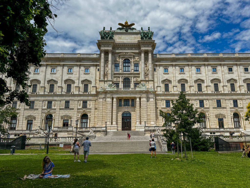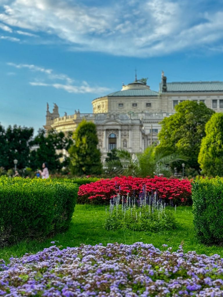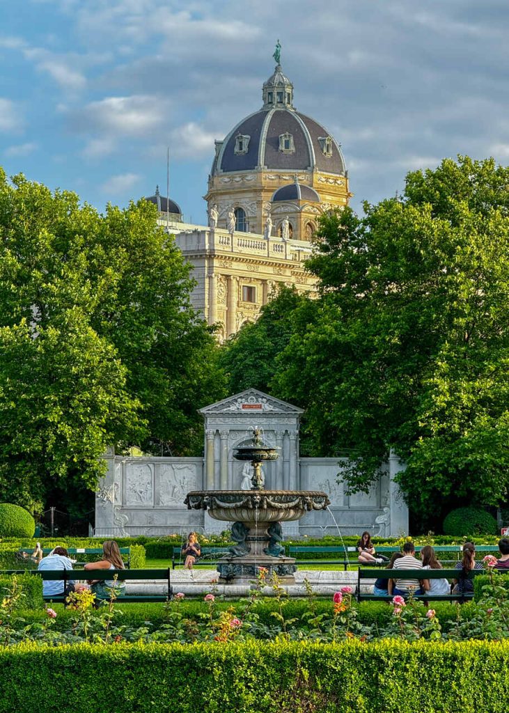 Stamtąd przeszliśmy przez Volksgarten, który okazał się idealnym miejscem na złapanie oddechu po podróży. To jeden z najładniejszych parków w centrum miasta, znany przede wszystkim z ogrodu różanego – latem podobno wygląda spektakularnie.
