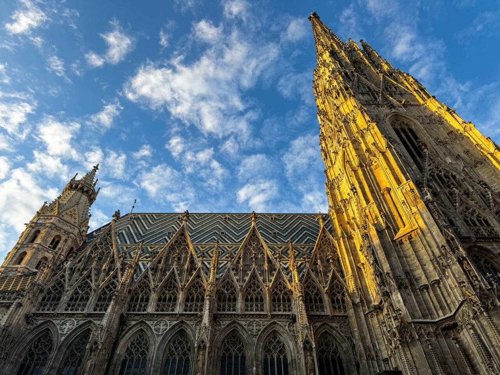 Kulminacją tego spaceru była oczywiście Katedra św. Szczepana. To symbol Wiednia i miejsce, które naprawdę robi wrażenie – szczególnie gdy trafiasz tam pierwszy raz. Strzeliste wieże gotyckiej katedry prezentowały się niebywale dostojnie w miękkim świetle zachodzącego słońca. Wejść do katedry możesz bezpłatnie.