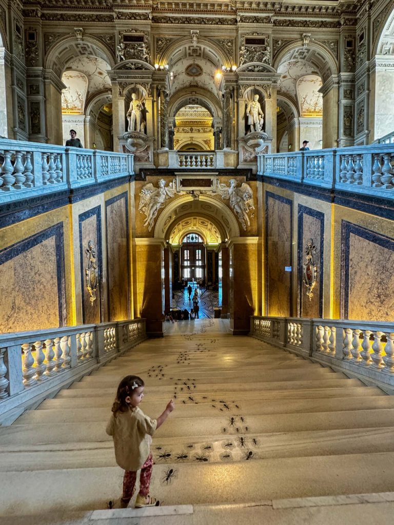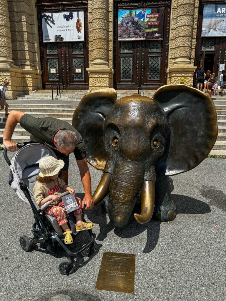 Ostatni dzień zaczęliśmy od muzeum, które wybrałam dla naszej córki – Muzeum Historii Naturalnej. Podjechaliśmy tramwajem na Plac Marii Teresy, przy którym znajduje się Muzeum Historii Sztuki oraz właśnie Muzeum Historii Naturalnej.