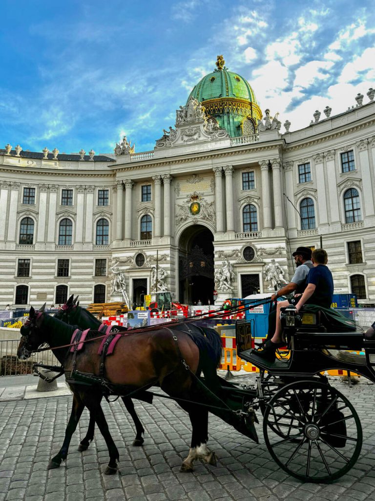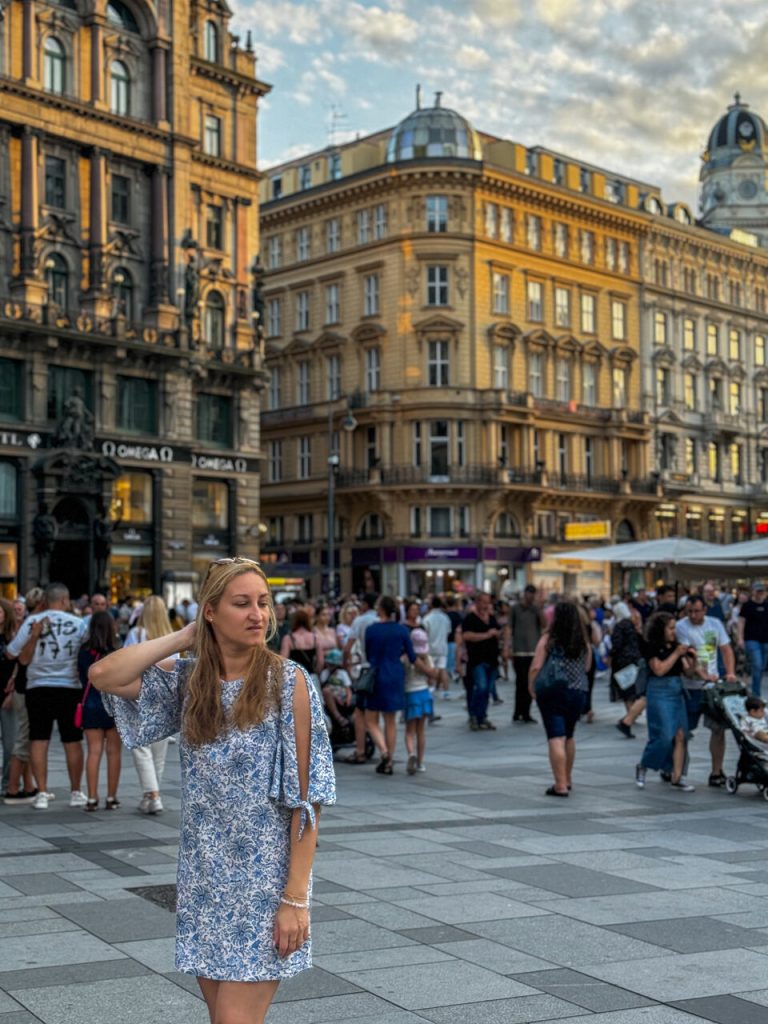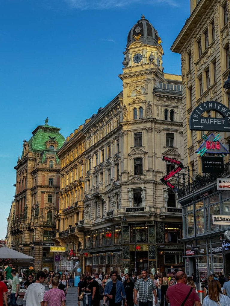 Dalej ruszyliśmy elegancką ulicą Kohlmarkt – jedną z najbardziej luksusowych ulic w Wiedniu – w stronę centrum. To właśnie tutaj czuć ten „cesarski” klimat miasta. Trafiamy na większy tłum, ze sklepowych witryn uśmiechają się do nas Louis Vuitton, Chanel i Gucci, a w oddali słychać tętent kopyt dorożek zajeżdżających pod muzeum cesarzowej Sissi.